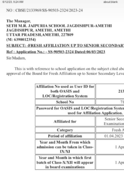 Fresh Affiliation UP to senior secondary Level